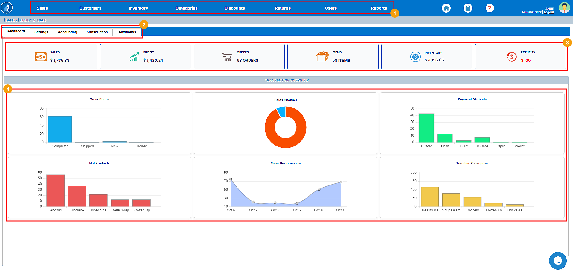 After successfully logging in, you will be directed to the Dashboard, which serves as the control center for your store’s daily operations. It provides a quick overview of sales performance, inventory levels, and key business metrics — all in one place.