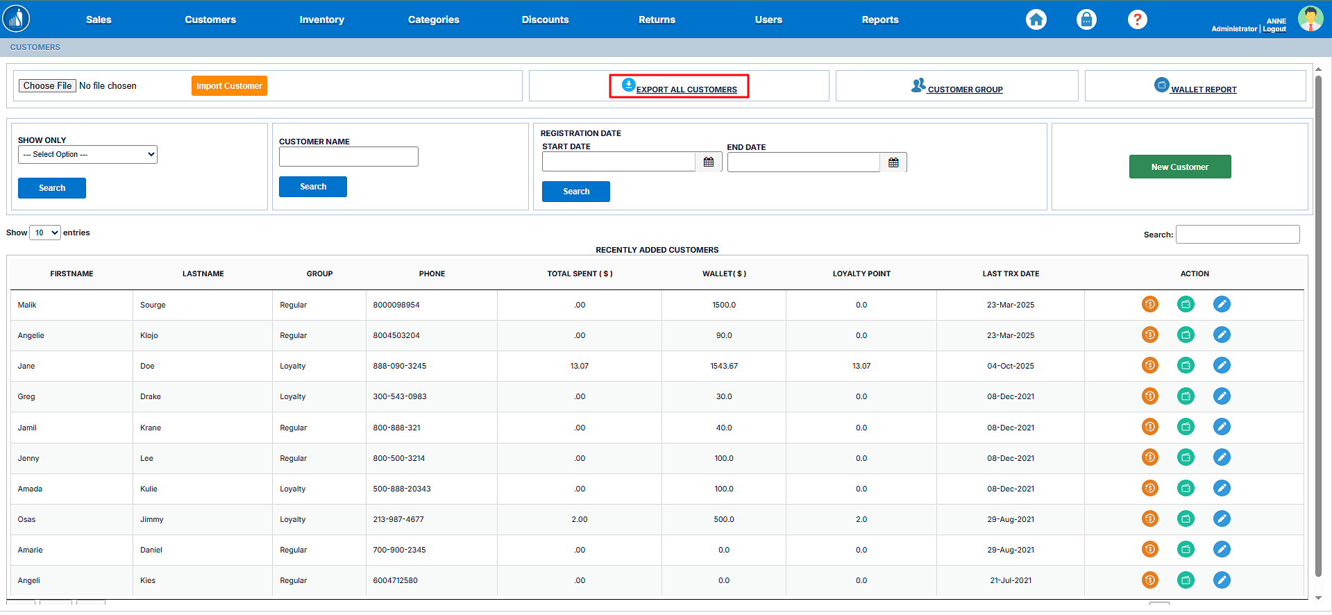 Tip: Regularly exporting customer data helps maintain a secure backup and enables you to analyze customer trends or use the data for targeted loyalty or email marketing campaigns.