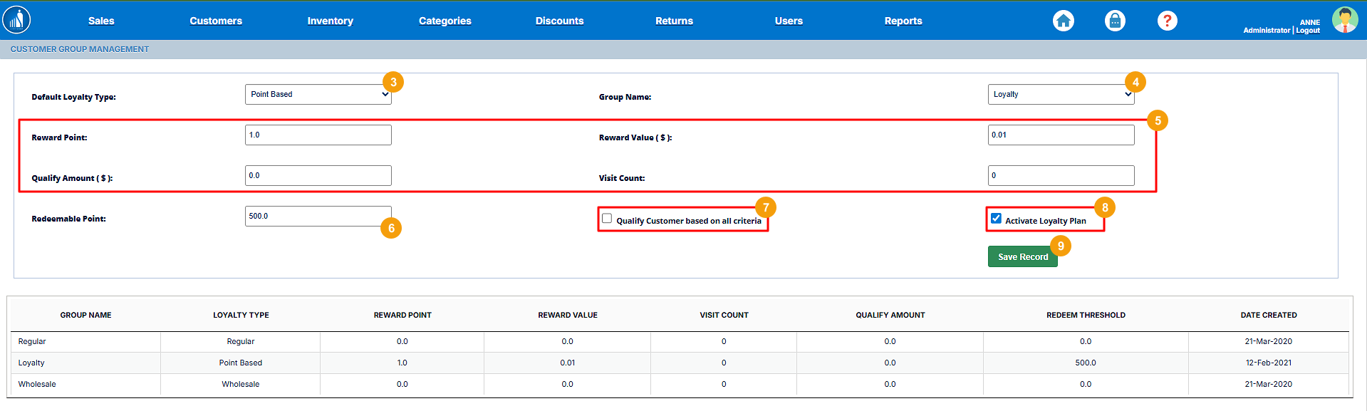 The system automatically calculates loyalty points based on the settings configured in the Customer Group.