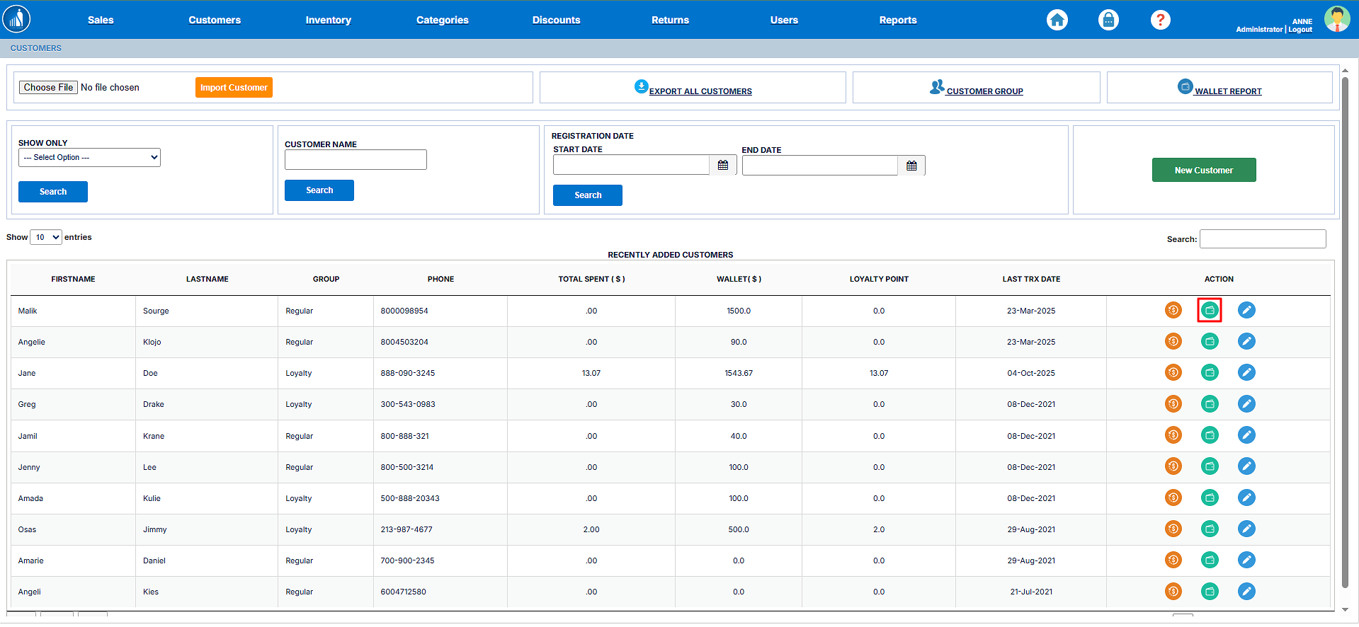 Each customer in Scantranx has a digital wallet that tracks their store credit, refunds, and loyalty redemptions. The wallet balance can be used for future purchases or as part of the payment during checkout.
