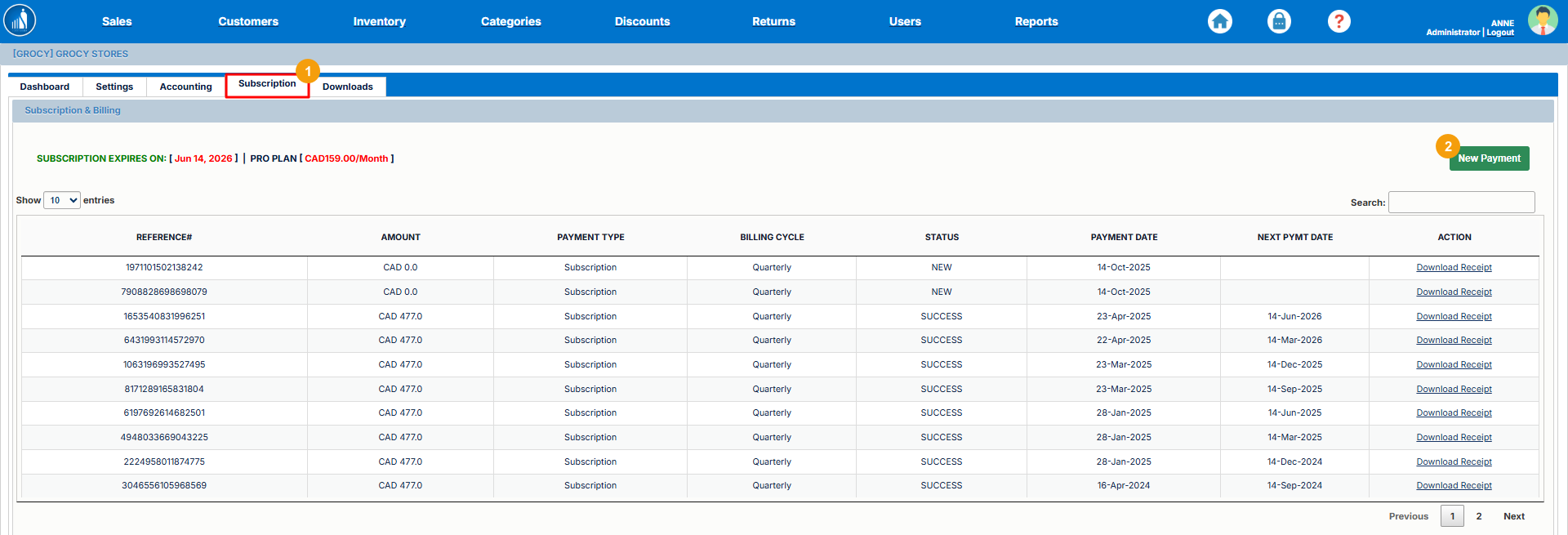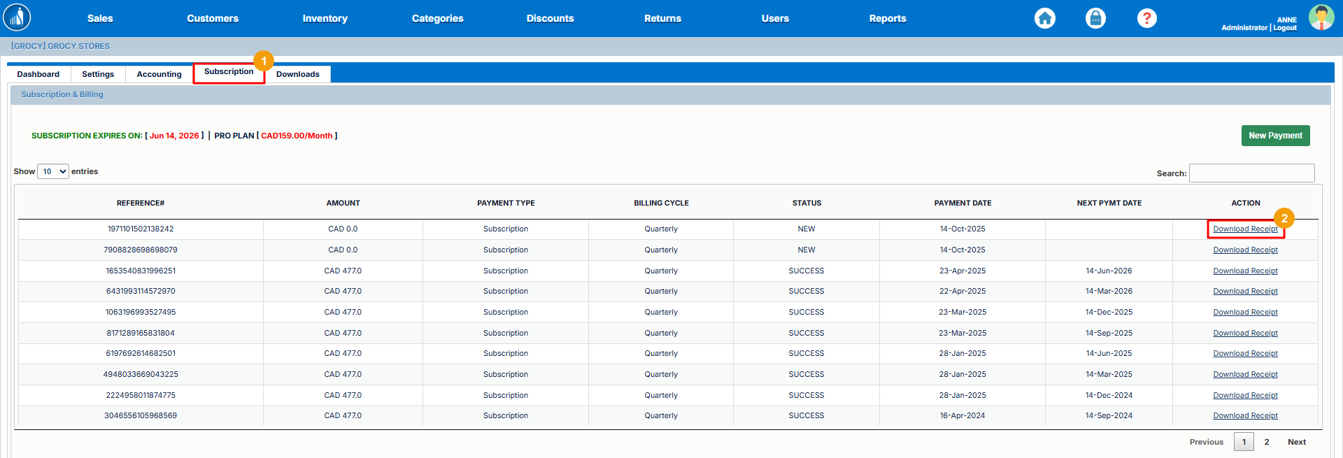 You can download receipts for your subscription payments directly from the Subscription tab. This allows you to maintain accurate financial records for accounting or reimbursement purposes.