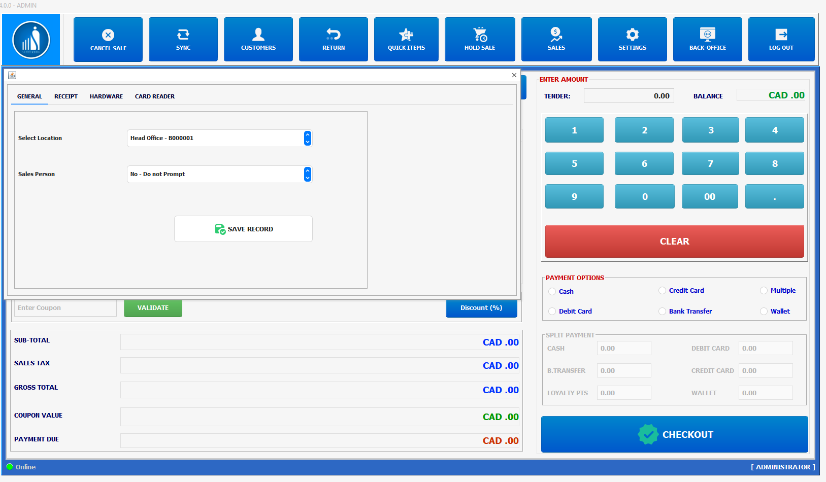 This setup allows you to select the Location and Salesperson before performing transactions.