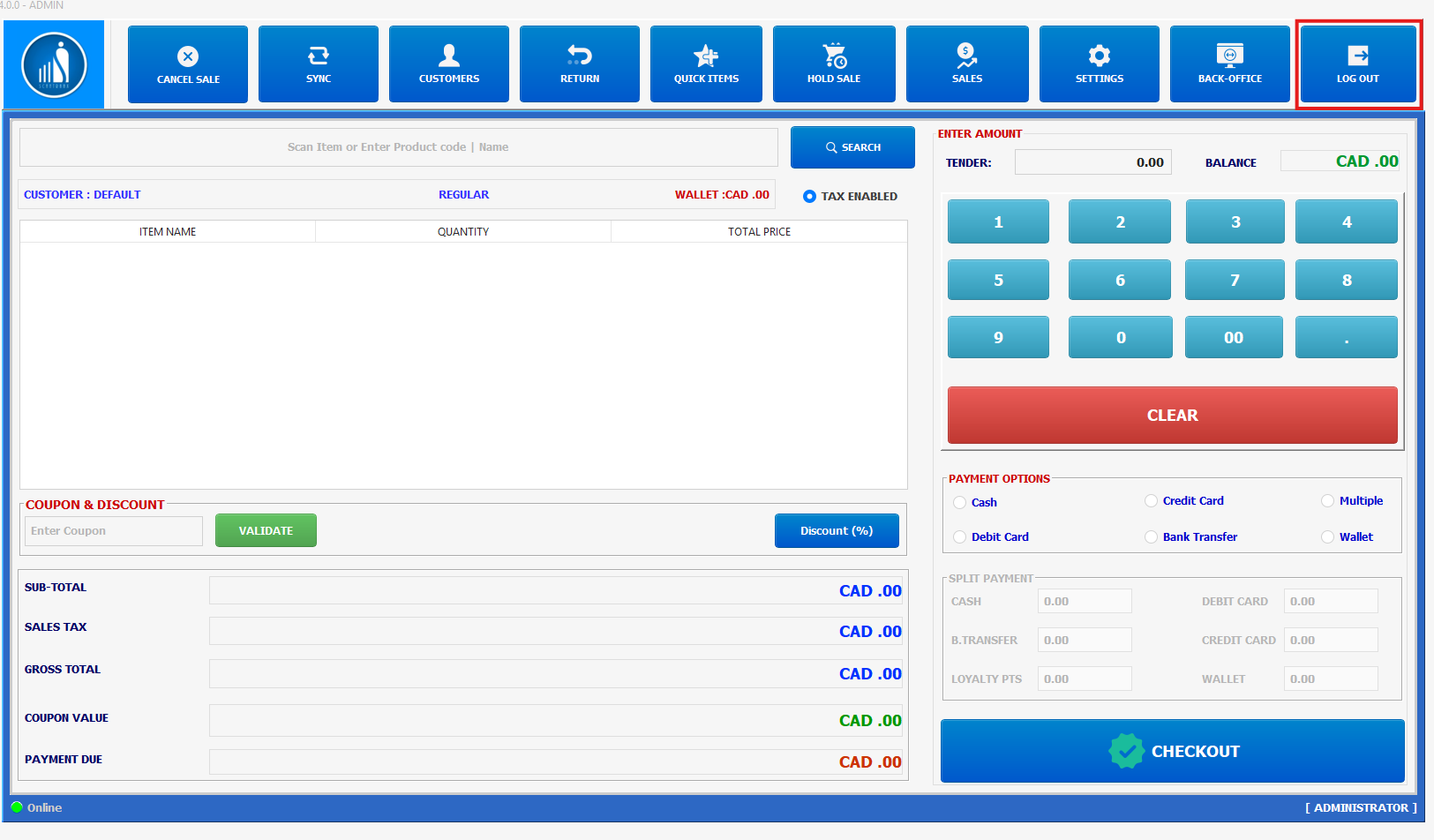 The Logout feature allows users to securely end their POS session after completing their shift or daily operations.