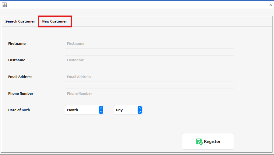 Click Register to save the new customer.